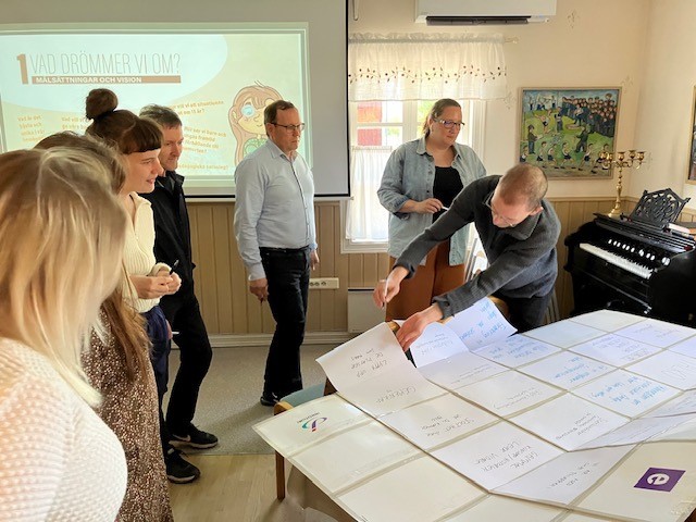 Vöråssa kunnan viranhaltijat ja yhdistysväki kokoontui työpajaan suunnittelemaan Vörån omaa kotiseutukasvatuksen mallia. Kuva: Ann-Sofi Backgren.